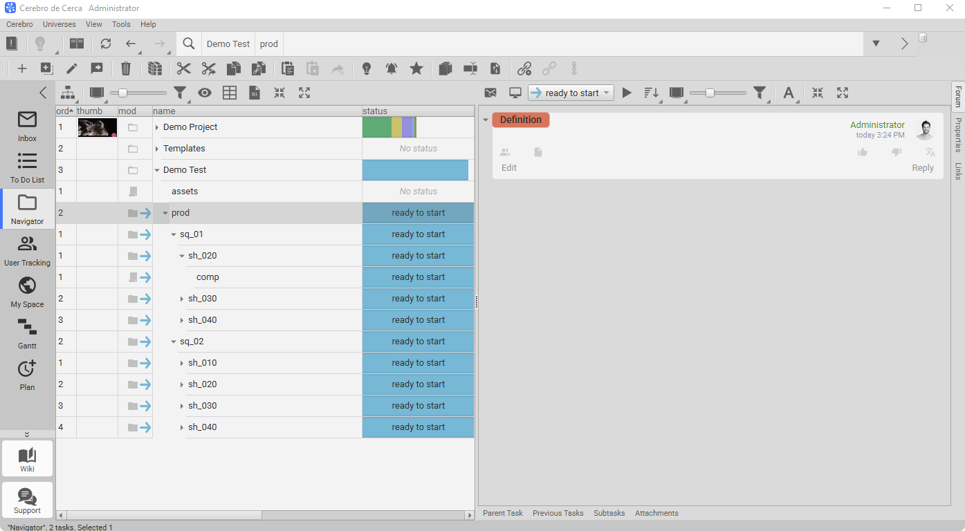 При помощи slash разделяется задача и её подзадача. При этом в Cerebro будет создана структура:
